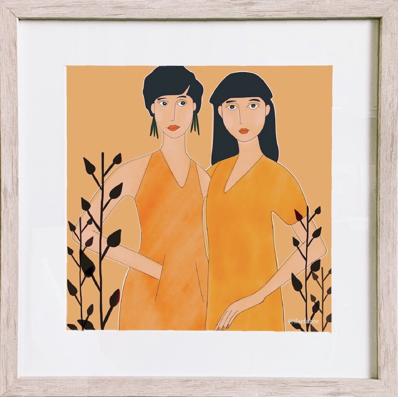 Poster 'Sisters' in houten lijst in beige kleur (40 x 40 cm)