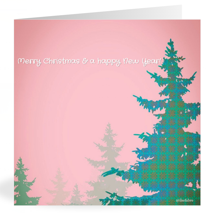 Fir trees pink.Kunstwerk op helderwitte papiersoort met glans.Inclusief witte enveloppe.Afmeting 14x14cm