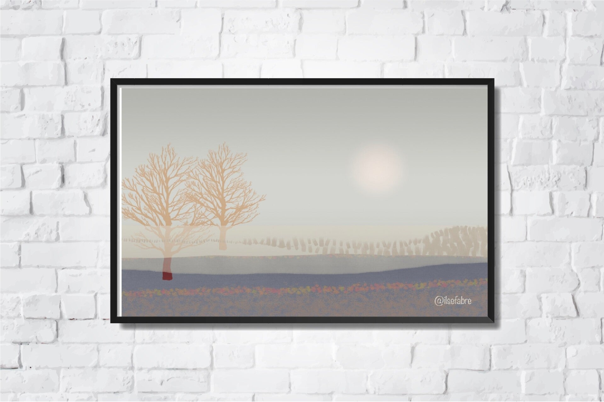 Kijk je ogen uit met dit mystieke landschap. Door de zachte kleurkeuze geeft het je een fris en ruimtelijk gevoel. Past mooi in een landelijk interieur.