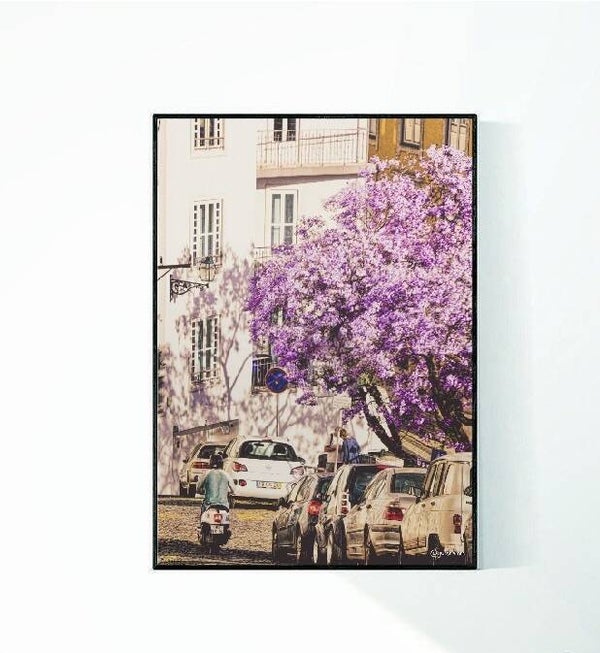 Poster 'Flower Street' in houten lijst in lichtwitte kleur