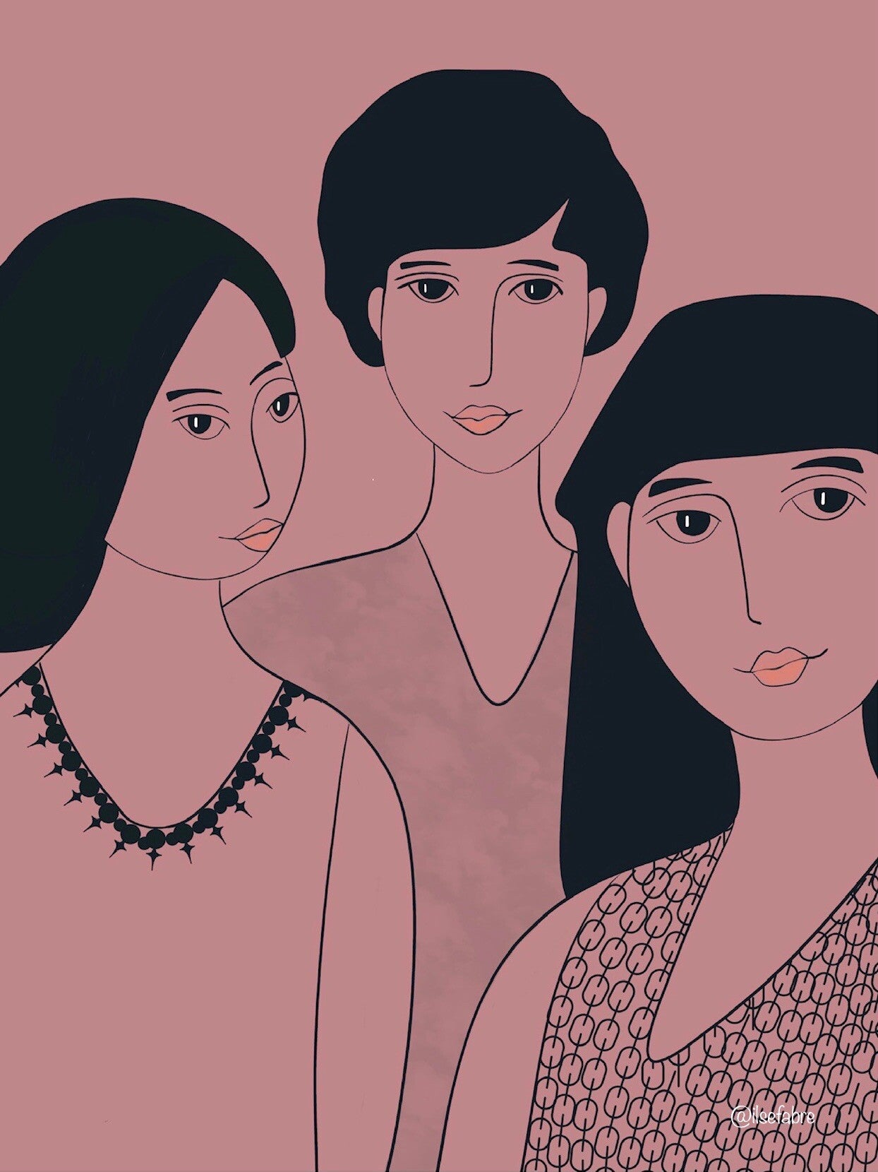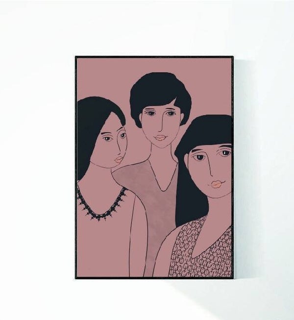 Poster 'Selfie sisters' in zwarte houten lijst (40 x 50 cm)