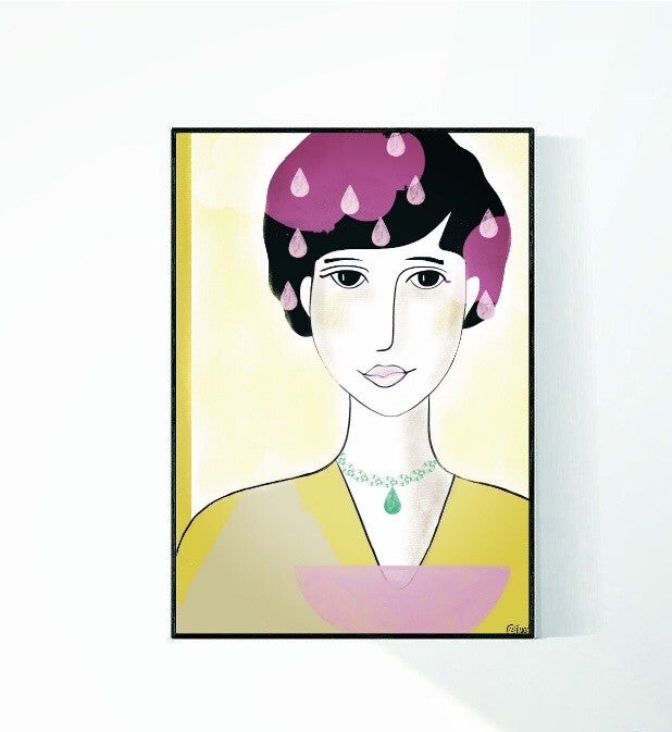 Op zoek naar een blikvanger in je interieur? Kies dan voor deze dame. De gele en paarse kleuren frissen je interieur op. In elke ruimte trekt ze de aandacht.