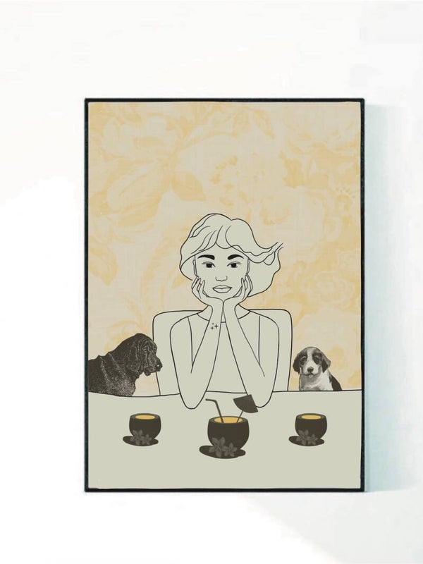 Poster 'Dogs and drinks' in houten lijst in lichtwitte kleur (A4)