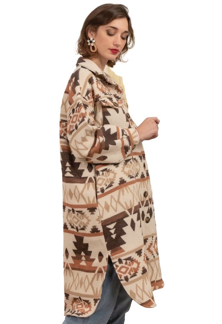 Lang overshirt camel met print