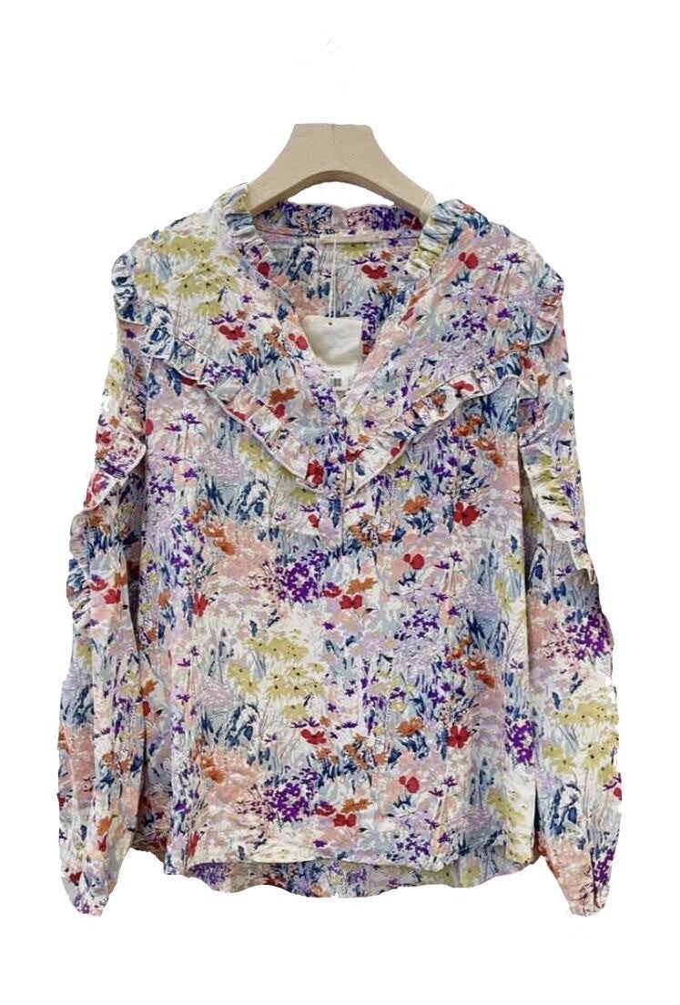Blouse in ‘Rose Shadow’ met ruches en print