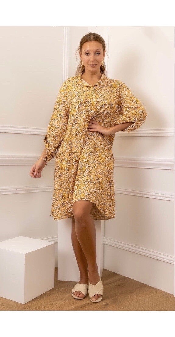 Hemdjurk met paisley-print geel