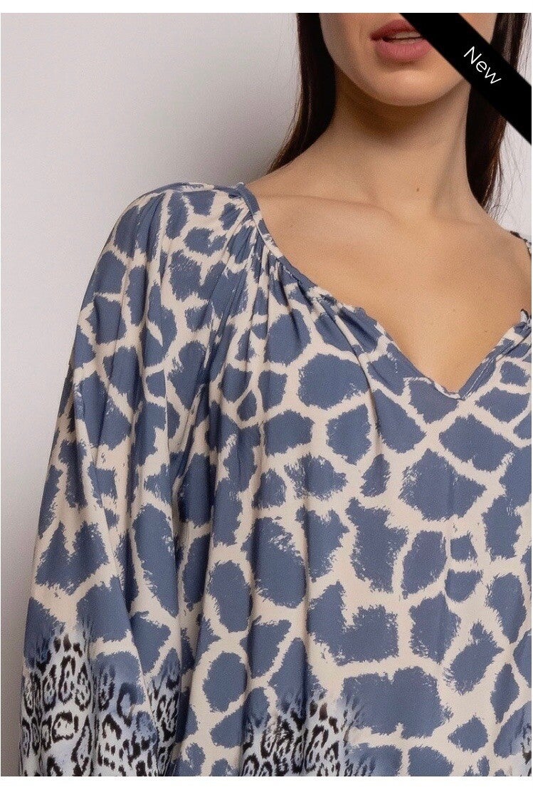 Blauwe flowy blouse met ‘Animal print’