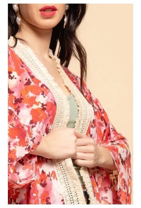 Kimono met rode print