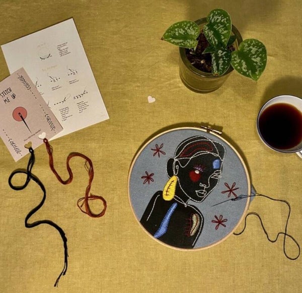 "Do It Yourself"-borduurpakket met alles wat nodig is om dit prachtige ontwerp te maken.