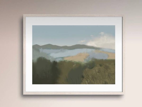 Materiaal: print met passe-partout, zwarte houten kader met glas