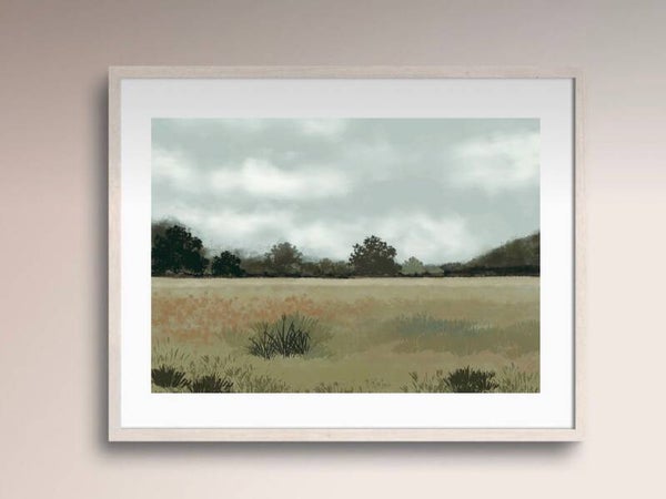 Materiaal: print met passe-partout, zwarte houten kader met glas
